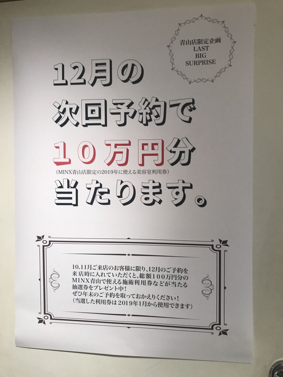 10月、11月にMINX青山店にご来店いただき施術をされたお客様で、ご来店時に12月の先行予約を入れていただいた方になります。