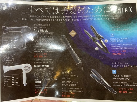 MINX青山店お店情報担当和田です December 01, 2019 Author minxaoyama 青山店3年目和田流星です!とうとう年末、最終月がやってまいりました!イベントが増えるこの季節、プレゼントに最高な告知です!ホリスティックシリーズ!噂のテラヘルツ波が搭載で、使うだけで髪が綺麗になり、ダメージレス、保湿力もあります!これで2019年を締めくくりましょう! Tag
