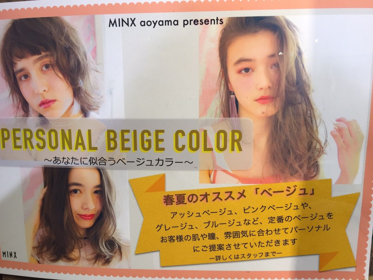 MINXaoyama お店情報担当 森です。 April 05, 2017 Aoyama Author minxaoyama MINX aoyama お店情報担当森です。 こんにちは! お店情報担当森です! いつも青山店をご利用いただきありがとうございます。 4月になり、新学期、新年度ですね! そんな皆様にオススメな情報です! MINXaoyama店では、 ~あなたに似合うベージュカラー~ を絶賛オススメ中です! アッシュベージュ、ピンクベージュ、グレージュ、ブルージュなどなど... あなたにあう新しいカラーを是非青山店でみつけてみてはいかがですか?(⌒▽⌒) ご来店お待ちしております!! Tag